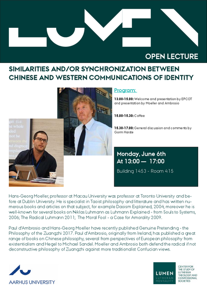 Hans-Georg Moeller, professor at Macau University was professor at Toronto University and before at Dublin University. He is specialist in Taoist philosophy and litterature and has written numerous books and articles on that subject, for example Daoism Explained, 2004; moreover he is well-known for several books on Niklas Luhmann as Luhmann Explained - from Souls to Systems, 2006; The Radical Luhmann 2011; The Moral Fool - a Case for Amorality 2009.
